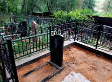 Затем наступил самый ответственный этап работы: монтаж ограждение. Работа по его установке опять-таки заняла достаточно долгое время, однако в результате чего по периметру могилы была установлена достаточно высокая статусная металлическая ограда, сразу же выделяющая место захоронения на фоне других участков. На фотографиях ниже представлен окончательный внешний вид могилы с разных ракурсов на момент завершения работ.