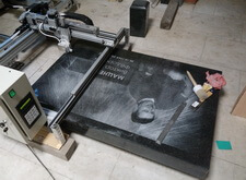После утверждения одного из них, мы нанесли изображение на камень с помощью гравировального станка – самый лучший на сегодняшний день способ нанесения изображений на камень.