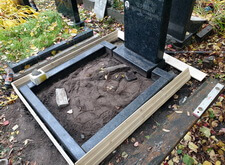 На этот раз клиент обратился к нам повторно – он попросил восстановить памятник на могиле, где мы сравнительно недавно сажали газон. Приехав на место захоронения мы оценили фронт работы: памятник действительно немного покосился, а балки цветника разъехались в разные стороны.